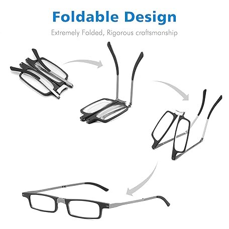 • SZEOEOM Ultra Thin Foldable Reading Glasses Ultralight Blue Light Foldable Readers for Men Women Compact Travel Portable Rectangle Glasses Case