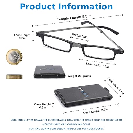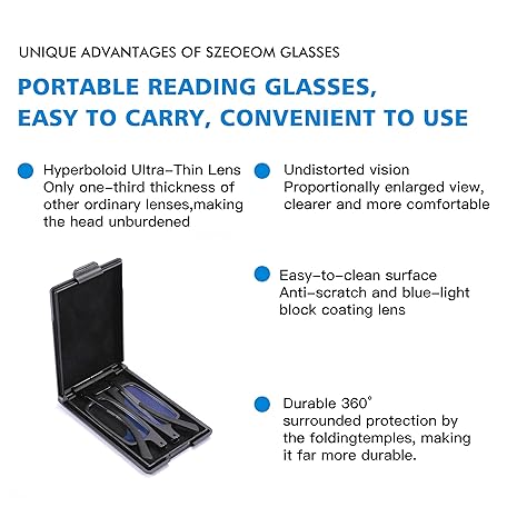 Thông tin sản phẩm SZEOEOM Ultra Thin Foldable Reading Glasses Ultralight Blue Light Foldable Readers for Men Women Compact Travel Portable Rectangle Glasses Case