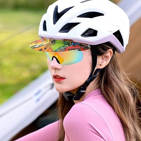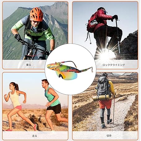自転車サングラス, 帽子一体型サングラス, ミラーレンズ ファッショナブルなアウトドアスポーツサングラス ドライビング ハイキング キャンプ バックパッキング 自転車用