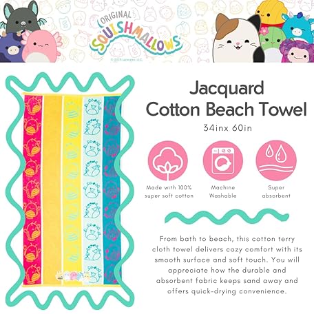 Sản phẩm Franco Adult Collectible Oversized Beach Towel, Squishmallow, 64" x 86.4 cm đang được bán với giá ưu đãi là $25.3316 tại nước Nhật.