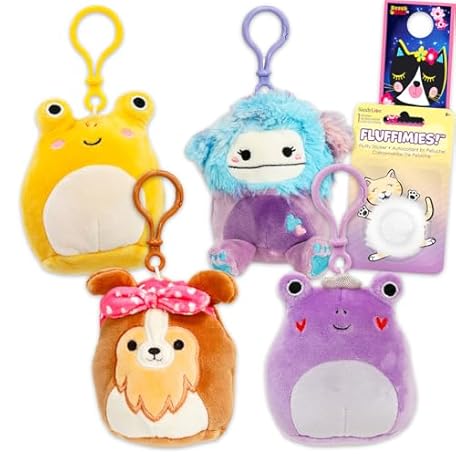 • Squishmallowsぬいぐるみキーチェーンセット - 3.5インチのキーチェーンぬいぐるみプラスステッカーセット その他| Squishmallowsぬいぐるみバッグクリップ バックパック 財布などに (スタイルは異なる場合があります)