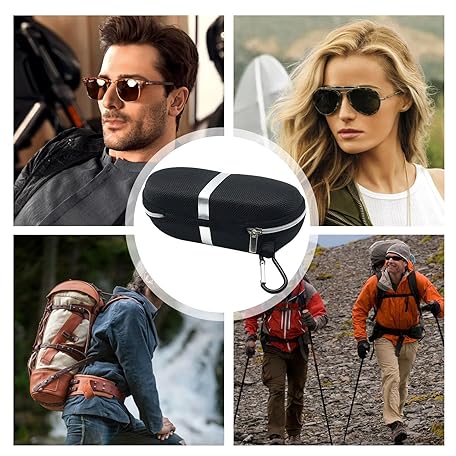 Thông tin sản phẩm Travel Sunglasses Organizer | Protective Box with Clip Zipper for Sports Glasses - Sunglasses Case Protective Glasses for Cycling/Travel/Backpacking/Camping, Black///White, Refer to description, black