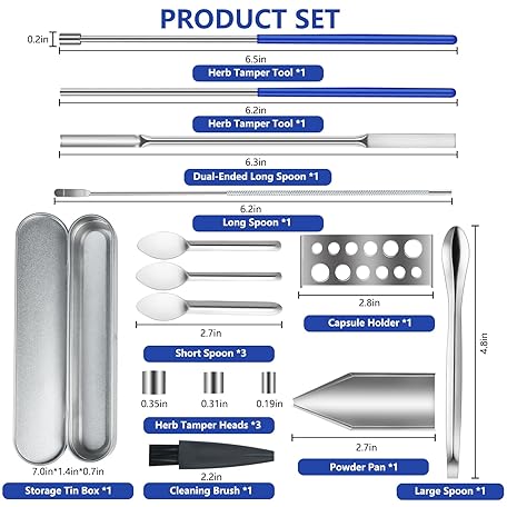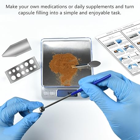 Thông tin sản phẩm Artcome 15 PCS Capsule Filling Kit for Pill Filler - Lab Scoops, Powder Pan, Herb Tamper and Capsule Holder - Herb Powder Tamper Tools for Medication and Supplements - All Sizes 000 00 0 1 2 3 4 5