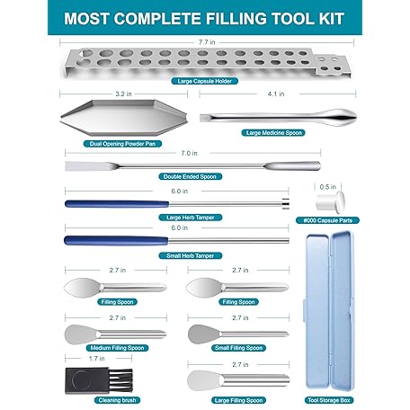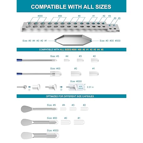Sản phẩm Capsule Filling Machine Kit – Pill Filler Tray Tools for Quickly Maker Empty Gel Capsules All Size 000 00 0 1 2 3 4 5, Lab Spoons Spatula Scoops Tool 13Pcs đang được bán với giá ưu đãi là $28.3291 tại nước Anh.