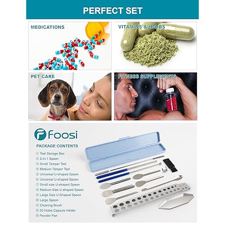 Thương hiệu Foosi là cái tên nổi tiếng được rất nhiều khách hàng trên thế giới chọn lựa. Với kiểu dáng đẹp mắt, sang trọng, sản phẩm Capsule Filling Machine Kit – Pill Filler Tray Tools for Quickly Maker Empty Gel Capsules All Size 000 00 0 1 2 3 4 5, Lab Spoons Spatula Scoops Tool 13Pcs là sự lựa chọn hoàn hảo nếu bạn đang tìm mua một món cho riêng mình.
