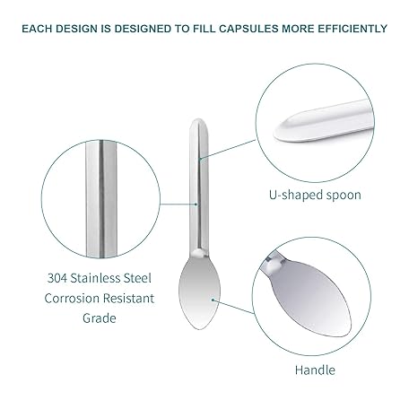 Thông tin sản phẩm Capsule Filling Machine Kits for Empty Pill Capsules Filler, Lab Supplies - Micro Tiny Spoon Spatula, Lab Scoop Filling Tray Powder Tool, Gel Capsules Size # 000 00 0 1 2 3 4 5 (#000 00 0 1)