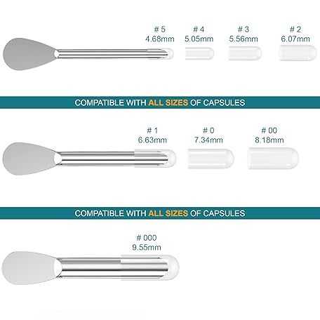Thông tin sản phẩm Capsule Filling Machine Kits for Empty Pill Capsules Filler, Lab Supplies - Micro Tiny Spoon Spatula, Lab Scoop Filling Tray Powder Tool, Gel Capsules Size # 000 00 0 1 2 3 4 5 (#000 00 0)