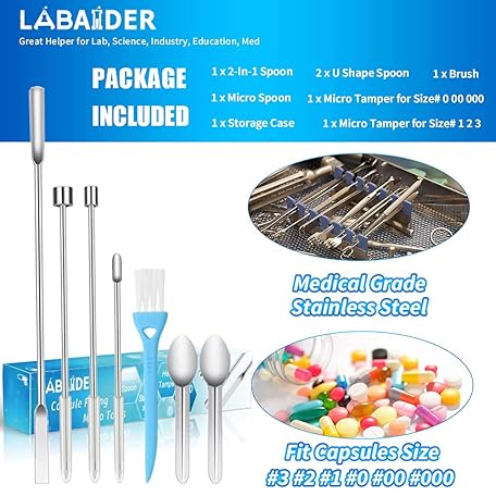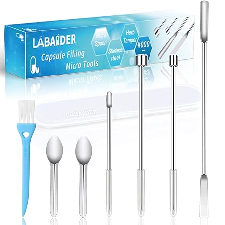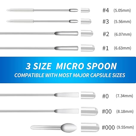 Sản phẩm Capsule Filling Machine Tools Capsule Filler Pill Maker - Micro Spoon Spatula/Mini Powder Herb Tamper/Lab Micro Scoop/Clean Brush & Storage Case, Fit Empty Capsules Sizes #000 00 0 1 2 3 đang được bán với giá ưu đãi là $23.9582 tại nước Anh.