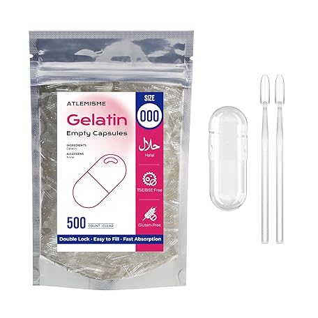 Sản phẩm Empty Capsules Size 000 500 Count,Clear Empty Gelatin Capsules Kosher,Halal and Non GMO Certified for DIY Supplements.Hypoallergenic Gel Capsules Empty with 2 Spoons,Adapted to The Capsule Filler đang được bán với giá ưu đãi là $17.8433 tại nước Anh.