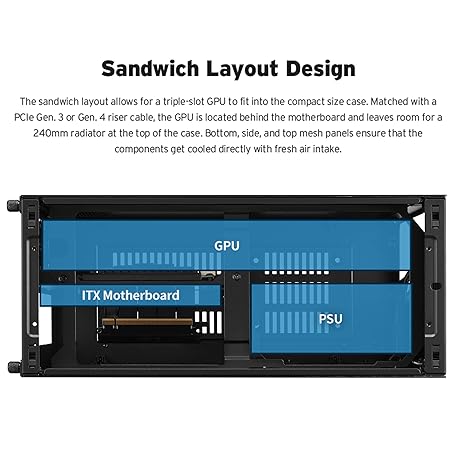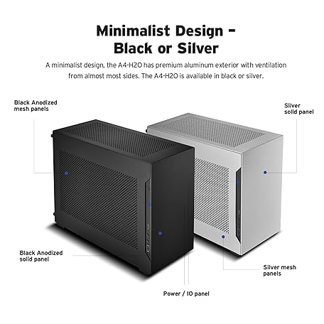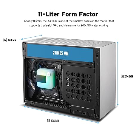 Thông tin sản phẩm Lian Li A4-H2O X4 Mini-ITX Case with PCIe 4.0 Riser, Support for Triple-Slot GPU, 240mm Radiator, and Full Mesh Panels – Black