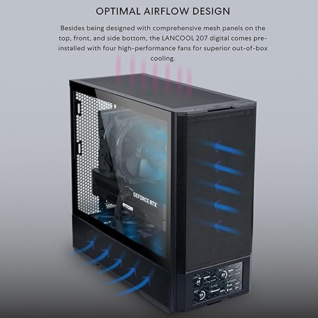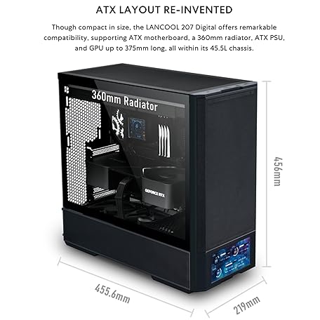 Thông tin sản phẩm Lian Li LANCOOL 207 Digital ATX Computer Case w/Integrated LCD Screen, Mesh-Centric Panels Mid-Tower PC Case w/ 2 x 140x40x30mm PWM Fans, 2 x 140mm Fans Pre-Installed, Side or Rear-Mount PSU