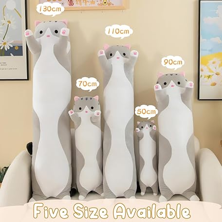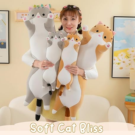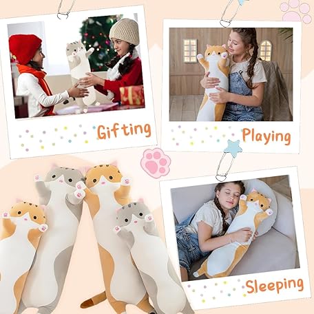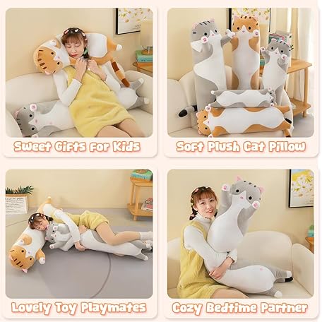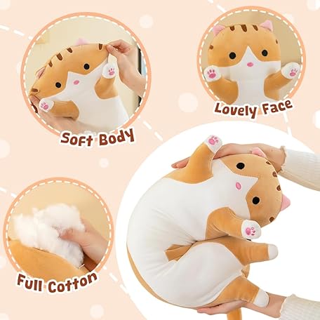 Thông tin sản phẩm Long Cat Plush Pillow, Cute Stuffed Animal Kitten Soft Huggable Toy for Kids and Adults, 1pcs, 50cm/Orange