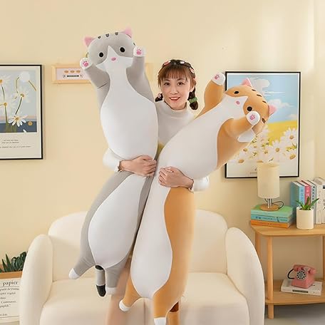 Sản phẩm Long Cat Plush Pillow, Cute Stuffed Animal Kitten Soft Huggable Toy for Kids and Adults, 1pcs, 50cm/Orange đang được bán với giá ưu đãi là $15.151 tại nước Anh.
