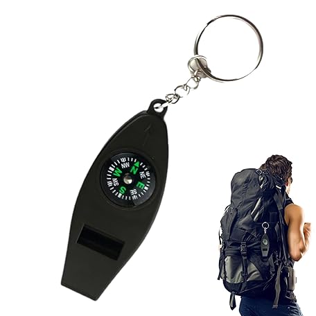 Shenrongtong Survival Whistle Keychain,Camping Whistle | Safety Whistles Survival Gear, 4 in 1 Magnifying Glass Loud Whistle for Backpacking, Camping, Hiking