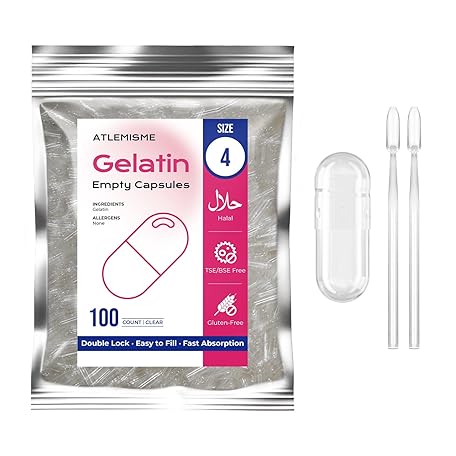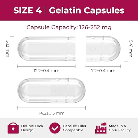• Empty Gelatin Capsules Size 4 - (100 Count) Very Small Empty Capsules Ideal for DIY Filling - Gel Caps with 2 Filling Spoons for Capsule