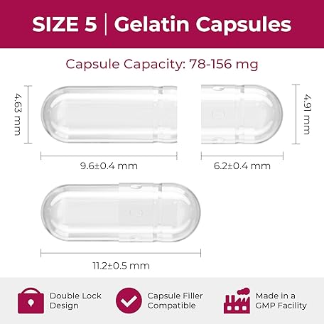 • Empty Gelatin Capsules Size 5 - (100 Count) Very Small Empty Capsules Ideal for DIY Filling - Gel Caps with 2 Filling Spoons for Capsule