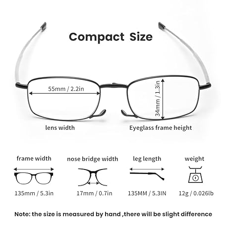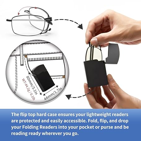 • Folding Reading Glasses Blue Light Blocking Foldable Readers with Portable Case for Unisex