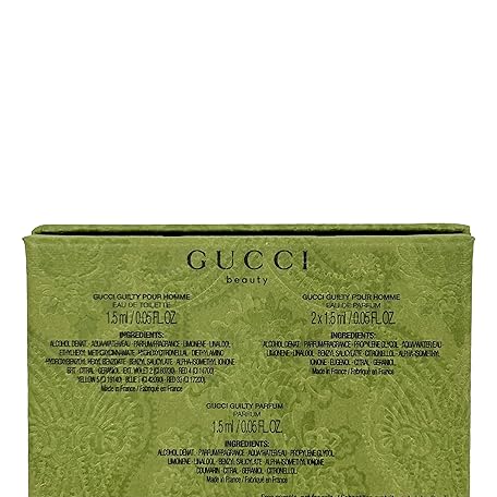 Thông tin sản phẩm Gucci GUILTY Sample Perfume MEN GIFT SET Guilty Pour Homme EDT, Guilty Parfum, 2 x Guilty Pour Homme - 1.5 ml / 0.05 oz - set of 4 spray samples (9094)