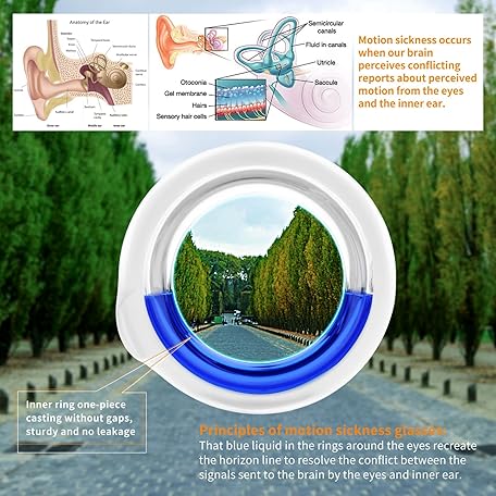 Hion Motion Sickness Glasses,Relieve Carsickness Airsickness Seasickness Glasses,Ultra-Light Portable Nausea Vertigo Glasses, No Lens Liquid Glasses for Adults or Kids