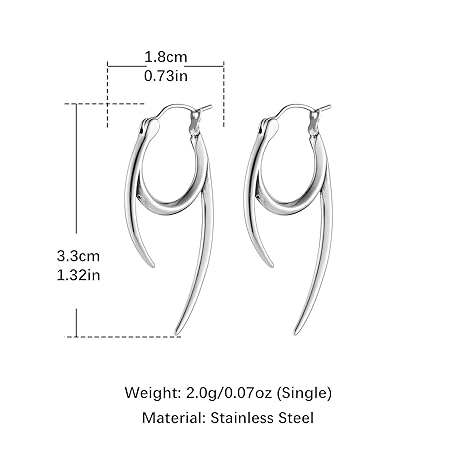 HZMAN Spike Earring for Men Women Retro Gothic Stainless Steel Lightweight Hoop Earring Jewelry Gift