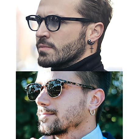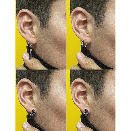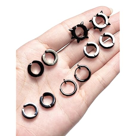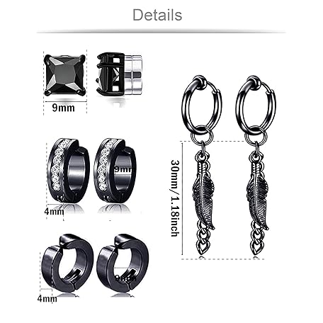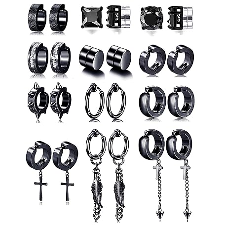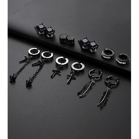 Ofeiyaa 12 Pairs Magnetic Stud Earrings Stainless Steel CZ Hoop Punk Feather Dangle Hinged Non-Piercing Earrings Clip on Magnet Earring Set for Women Men Silver Plated
