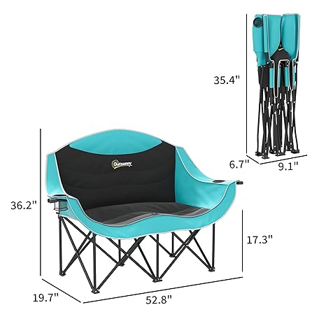 Outsunny Double Camping Chair for Adults, Padded Folding Camp Chair for 2 Person with Armrest, Wine Glass Holder, Cup Holder, Carry Bag for Outdoor Sports, Picnics, Supports up to 552 lbs.