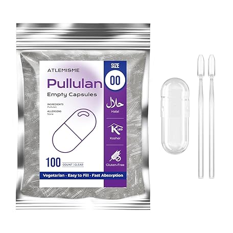 • Pullulan Empty Capsules Size 00 - Vegan Capsules Empty (100 Count) Empty Capsules DIY Vegetable Capsule Filling - Veggie Capsules Empty Caps with 2 Micro Lab Spoons for Capsule Filling