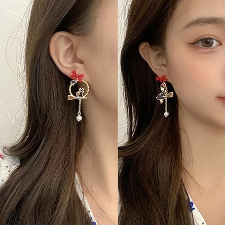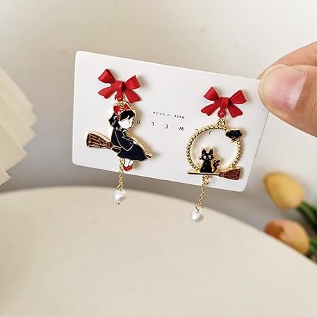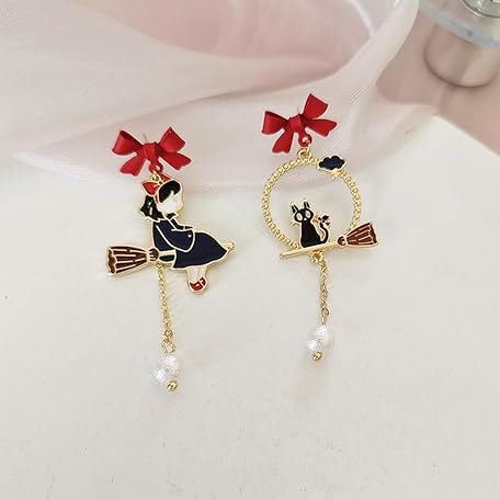 sailorsunny 925 Silver Post Earrings For Women Personalized Stud Earrings Anime Asymmetrical Enamel Pendant Earrings