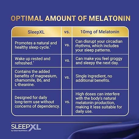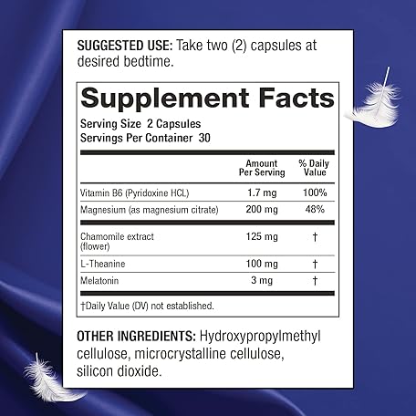 Thông tin sản phẩm SleepXL Sleep Supplement Non-Habit-Forming Formula - Fall Asleep Faster & Sleep Longer - 5 key ingredients include Melatonin, L-Theanine, Chamomile, Magnesium & Vitamin B6 (60 Capsules, 30 Servings)