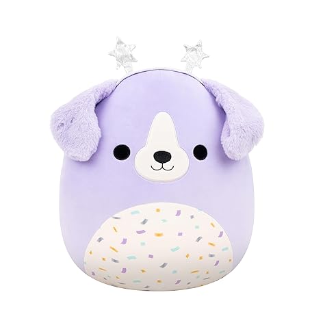 • Squishmallows Original 14in Deontay The Purple Retriever with Birthday Confetti Belly and Star Headband – Official Jazwares Plush (Large)