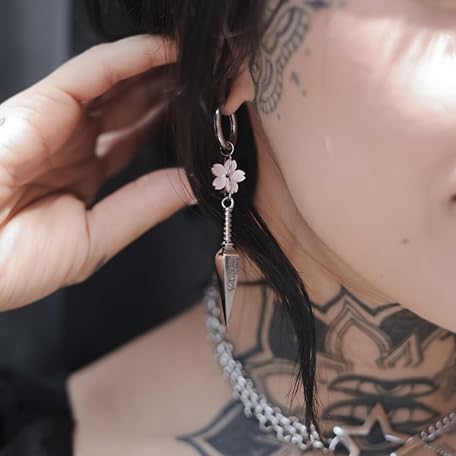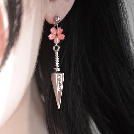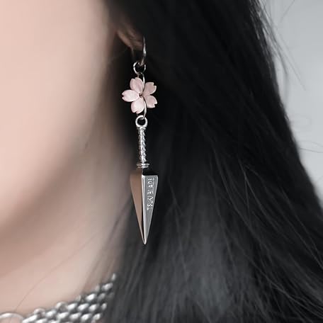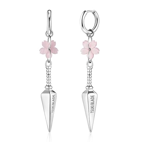 Tsuki Blade Stainless Steel Anime Weapon Sakura Dangle Earrings - Silver Black Or Gold, 3 colors, Hand-crafted, Stainless Steel, Waterproof