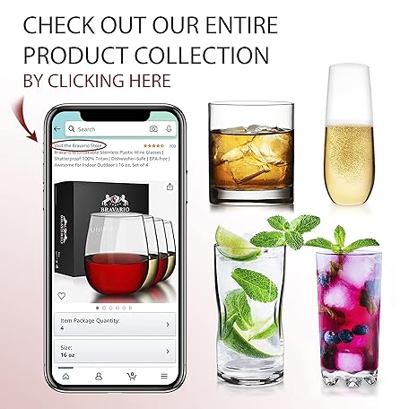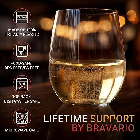 Thương hiệu Bravario là cái tên nổi tiếng được rất nhiều khách hàng trên thế giới chọn lựa. Với kiểu dáng đẹp mắt, sang trọng, sản phẩm Unbreakable Stemless Plastic Wine Glasses | Reusable | Shatterproof 100% Tritan Plastic | Dishwasher-Safe | BPA-free | Awesome for Indoor & Outdoor | 16 oz, Set of 4 là sự lựa chọn hoàn hảo nếu bạn đang tìm mua một món cho riêng mình.