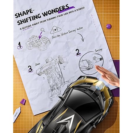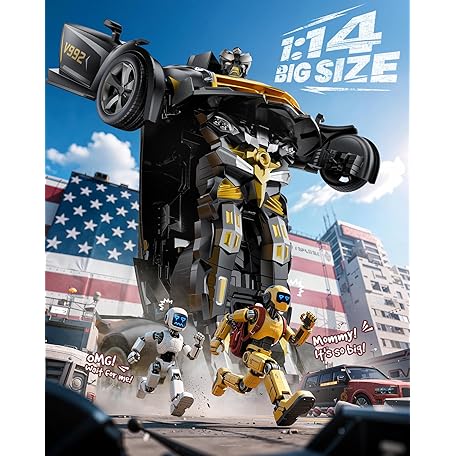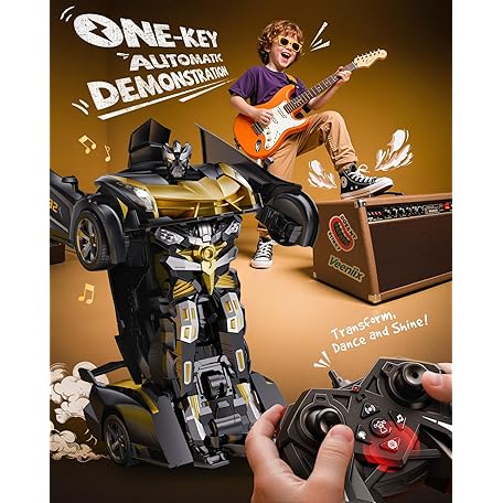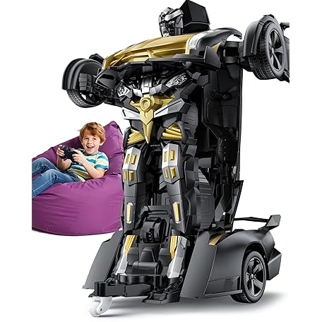 V992 Transform Remote Control Car, Transform Robot RC Cars, 1:14 Scale, 2-in-1 Robot Toy Car with Sound & Light, Gesture Sensing, Automatic Deformation, Great Gift Toys for Boys and Girls 4-6 (Golden)