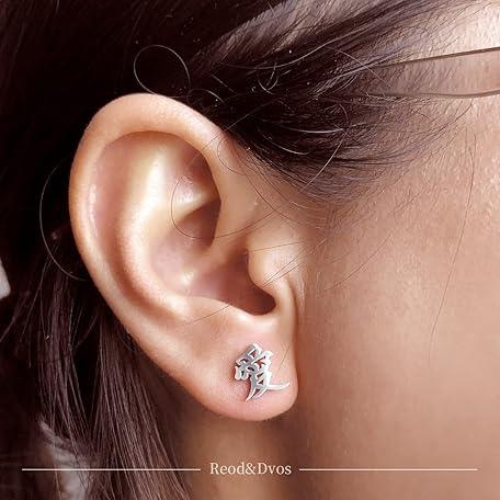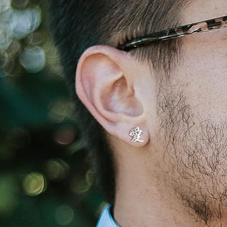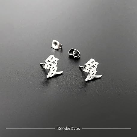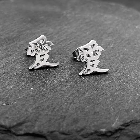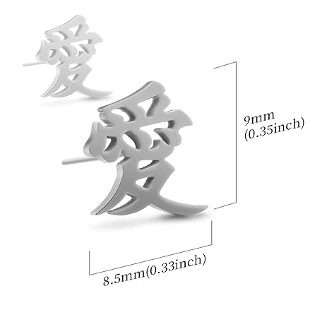 Wchama Japanese Love Kanji Earrings Gold Black Steel Chinese Character Earrings for Men Women