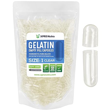 • XPRS Nutra Size 1 Empty Capsules - 1000 Count Empty Gelatin Capsules - Pills DIY Capsule Filling - Pure Bovine Pill Gel Caps for Do-It-Yourself Supplements (Clear)