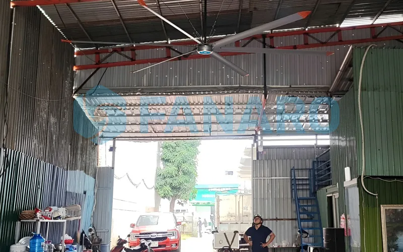 - Làm mát hiệu quả không gian lớn: HVLS có thể giúp giảm nhiệt độ không gian từ 5 – 8°C nhờ tạo luồng gió đối lưu liên tục.