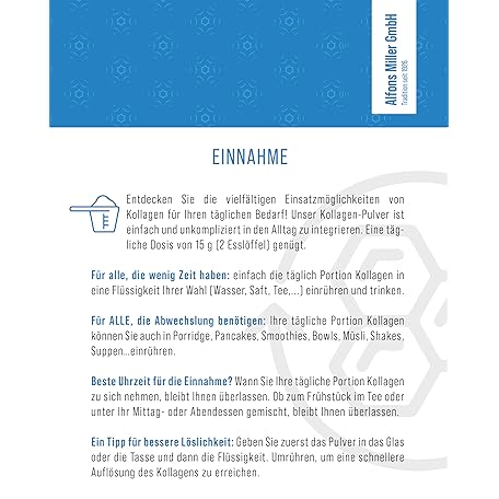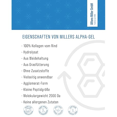 Thương hiệu Alfons Miller GmbH là cái tên nổi tiếng được rất nhiều khách hàng trên thế giới chọn lựa. Với kiểu dáng đẹp mắt, sang trọng, sản phẩm 100% Pure Collagen Powder - Collagen Peptides - Collagen Protein - Millers Alpha Gel 3 x 300 g - No Additives - Tasteless - Collagen Powder Made in Germany là sự lựa chọn hoàn hảo nếu bạn đang tìm mua một món cho riêng mình.