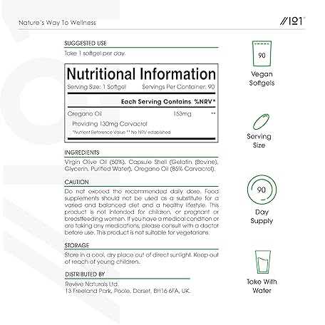 130mg Carvacrol - 153mg Oregano Oil - Cold Pressed - Oregano Oil Capsules with Highest Concentration Worldwide (85%+ Carvacrol) - Greek Oregano Oil - Pack of 90