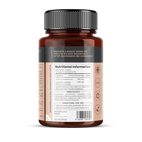 Sản phẩm 1500mg Glucosamine HLC and Chondroitin x 360 tablets (2 bottles with 180 tablets each - 6 months supply) đang được bán với giá ưu đãi là $65.0294 tại nước Đức.