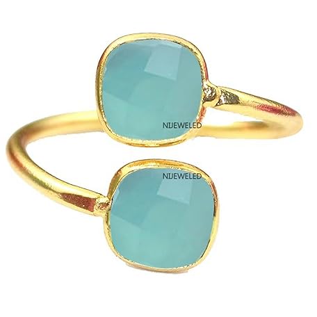 • 18K Yellow Gold Over 925 Sterling Silver Stylish Statement Ring for Women & Girl, Gemstone Dainty Ring, Fine Jewelry Christmas Gift (Adjustable upto Size 6 to Size 8, Aqua Chalcedony)