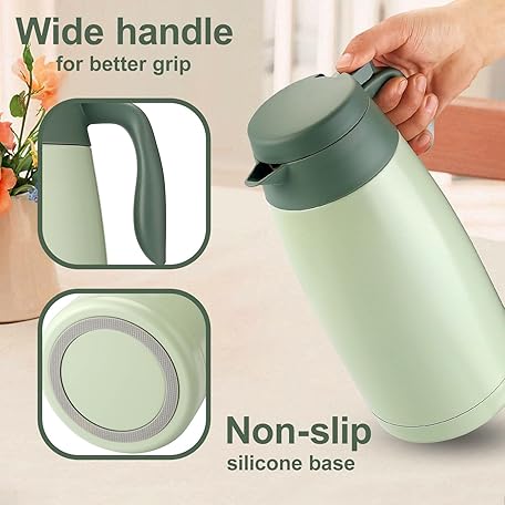 Thông tin sản phẩm 2 Litre Vacuum Flask, Stainless Steel Thermos Flask, Double-Walled Vacuum Insulation, Coffee Pot, Teapot, Hot Water Bottle, Carafes for Hot and Cold Drinks, Avocado Green