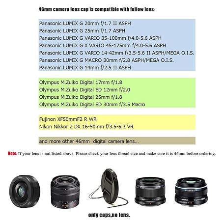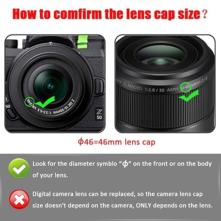 2 Packs 46mm Snap On Lens Cap for Nikkor Z DX 16-50mm f/3.5-6.3 Lens for Nikon Z50II Z30 Z50 Camera, Center Pinch 46mm Lens Cap