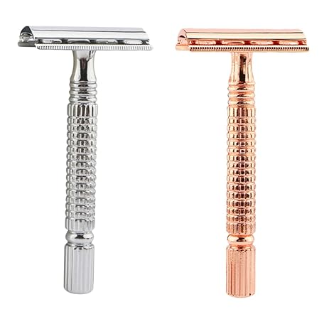 2 x Manual Razor for Men, Double-Sided Razor Made of Beard and Haircut Tool, Rose Gold and Sea of Stars, for Home and Travel