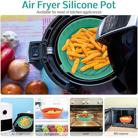 Thông tin sản phẩm 21.5 cm Reusable Air Fryer Silicone Pot Foldable Hot Air Fryer Baking Mould Universal Air Fryer Basket Air Fryer Silicone Liner Choose for Oven, Microwave Cake Baking Mould, Steamer