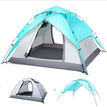 3-4 Person Popup Camping Tent, Easy Up Beach Tent, Waterproof Breathable Sunscreen Foldable with Carry Storage Bag for Hiking Beach Lightweight Backpacking Tent (Colour: A) (A)
