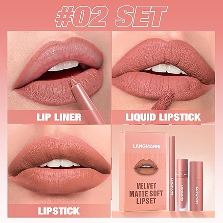 Sản phẩm 3-in-1 Matte Velvet Lipstick Set, 3 Pieces Matte Lipstick + Matte Liquid Lipstick + Lip Liner Set, Velvet Lipstick Long Lasting Lip Gloss Make Up Gift Set (#02, 1 Pack) đang được bán với giá ưu đãi là $8.9489 tại nước Đức.
