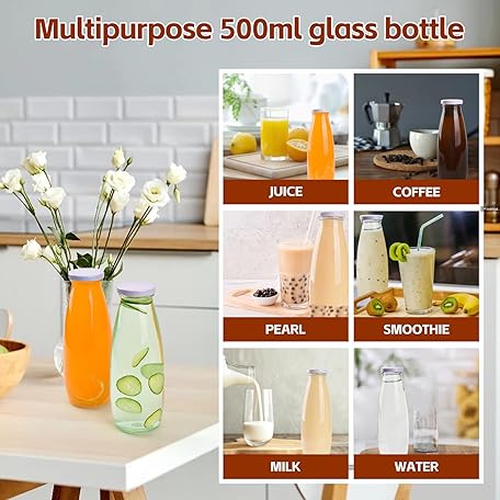 Thông tin sản phẩm 3 x Glass Bottles 500 ml Milk Bottles with Lid, Glass Bottles for Filling for Juice Smoothie, Water Bottle Glass Smoothie Bottle with Glass Straws Drinks Bottles for School, Outdoor