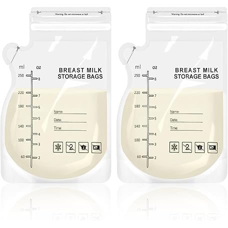 30 Pack Breast Milk Storage Bags, Easy to Pour Breast Milk Bags, Leakproof 250ml, Breast Milk, BPA Free, Pre Sterilized, Freezer Safe (White, Pack of 30)