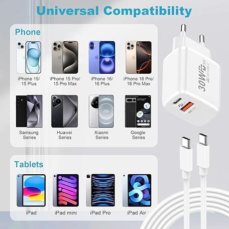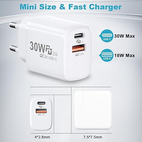 Sản phẩm 30 W USB C Charger Charging Cable for Google Pixel 9 Pro/9A/Pixel 8 Pro/8A/Pixel 7/6A, PD & QC3.0 Fast Charger Power Supply USB C Charging Plug with Charging Cable for iPhone 16/15 Pro Max, Samsung đang được bán với giá ưu đãi là $15.1946 tại nước Đức.