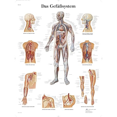 3B Scientific – Laminierte Menschliches Gefäßsystem Tafel – UV- & Staubgeschütztes Anatomieposter für Studium, Lehre & Kliniken